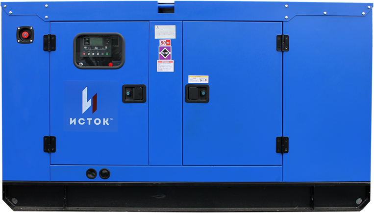 Дизельный генератор ИСТОК АД50С-Т400-РМ35 - трехфазный дизельный генератор переменного тока номинальной мощностью 50 кВт. Электростанция исполнена в шумозащитном кожухе и предназначена для резервного энергоснабжения коттеджей, малых торговых площадей, складов. В качестве основного источника энергии электрогенератор используется для проведения ремонтных работ, питания ручного инструмента, насосов.