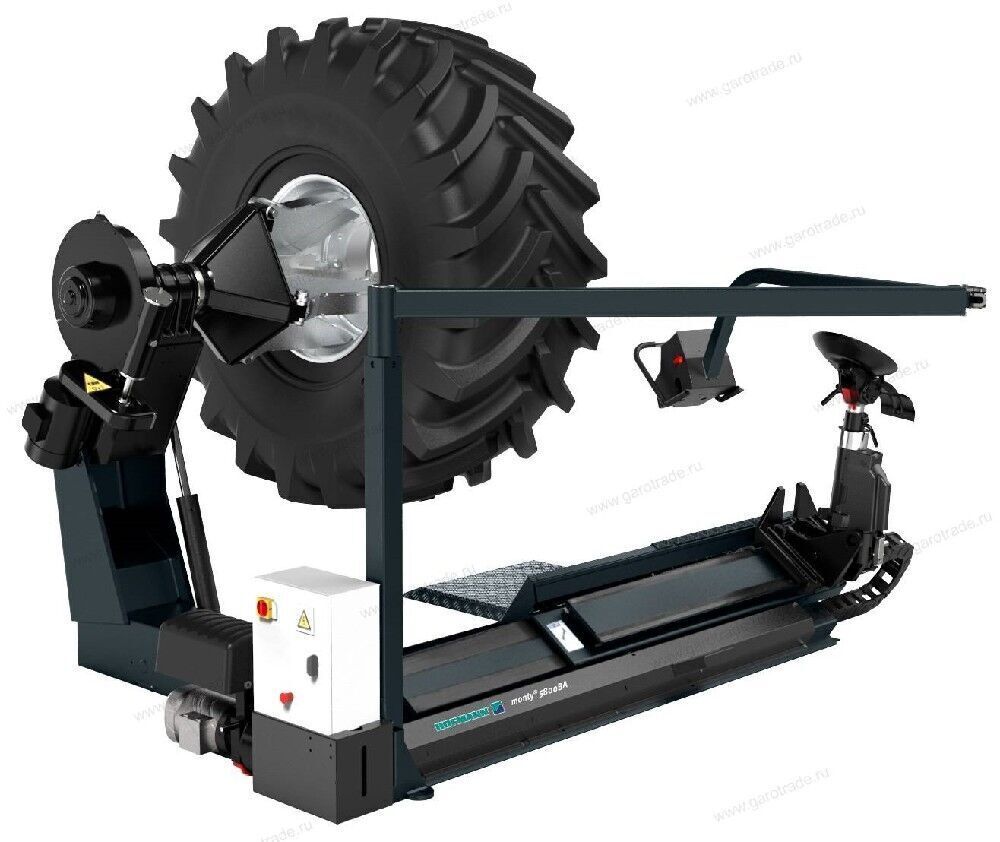 Полностью автоматизированный шиномонтажный станок предназначен для демонтажа/монтажа шин всех типов колес грузовых автомобилей, автобусов, а также колес сельскохозяйственной и спецтехники.