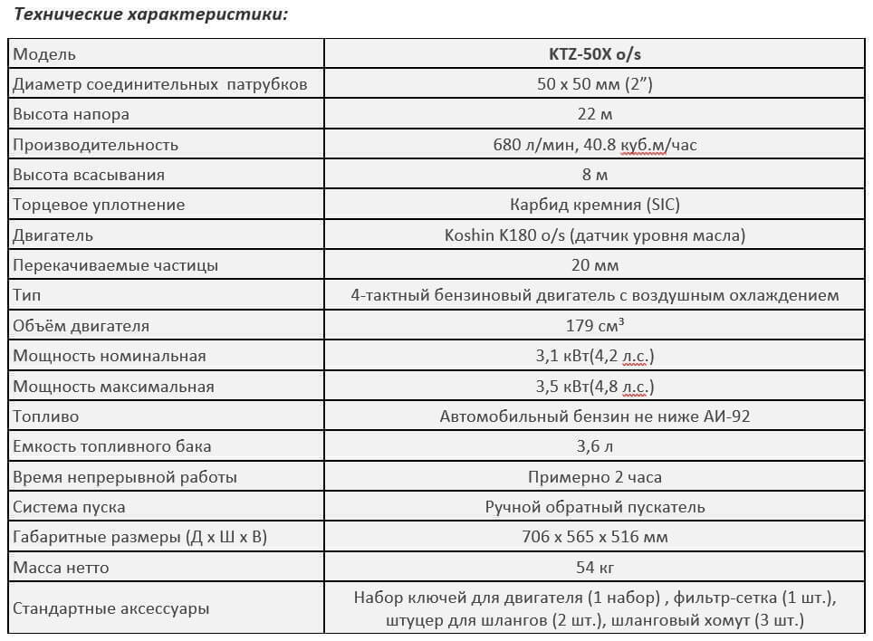 Вопросы и ответы о Бензиновая мотопомпа для сильно-загрязненной воды Koshin KTZ-50X o/s