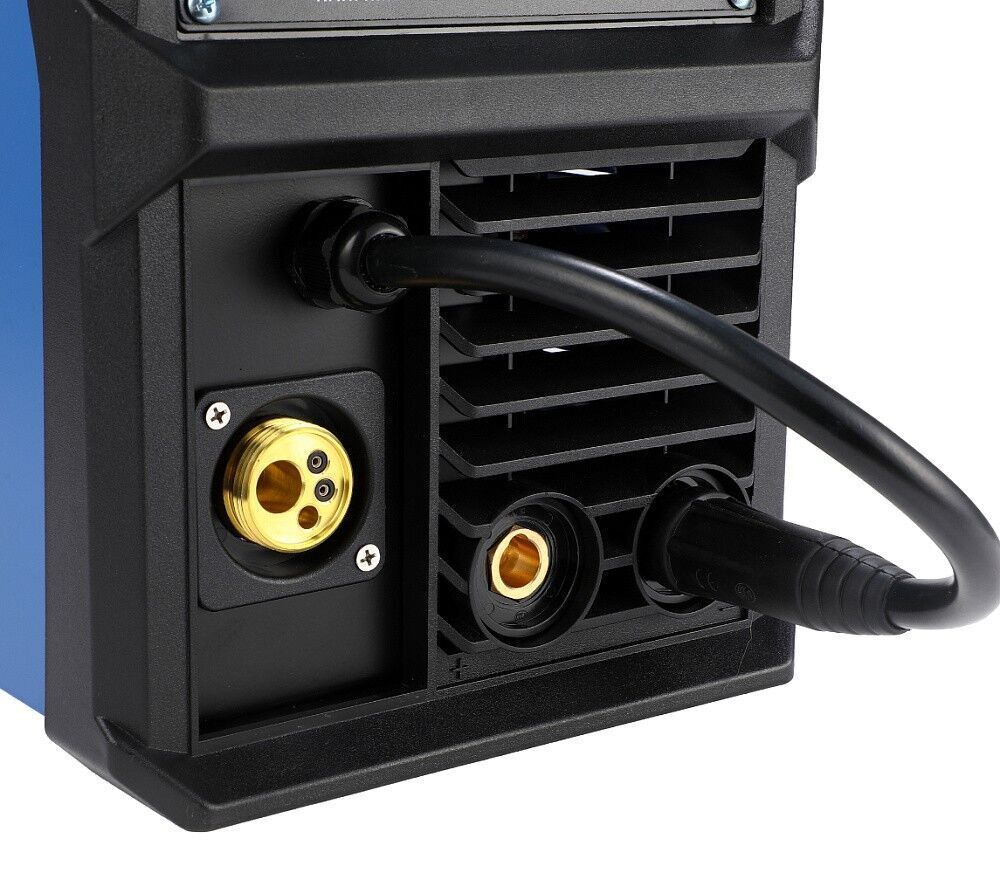 Евроразъем, катушка D200, MIG/MMA, смена полярности, два дисплея, три регулировки.