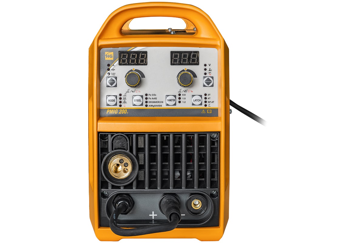 Сварочный полуавтомат HUGONG PMIG 200 III производство HUGONG, для поставок в Россию HUG WELDING. Синергетический инверторный сварочный полуавтомат, с уникальными функциями и возможностями! Компактный, легкий, удобный для переноски а так же при транспортировке, хранении. Корпус из листовой стали, надежно защищает внутренние элементы от повреждения. Одинарный и двойной пульс, для сварки черных и цветных металлов, идеальные сварочные швы. Аппарат имеет защиту от перегрузки, индикатор перегрева и неисправности, обеспечивая высокий уровень безопасности и надежность устройства. Так же данный аппарат имеет защиту от скачков напряжения. Высокое напряжение холостого хода обеспечивает легкость поджига сварочной дуги. Высокая стабильность сварки в реальном времени, простое интуитивно понятное управление сварочными параметрами. Подходит для сварки нелегированных, низколегированных и высоколегированных материалов.