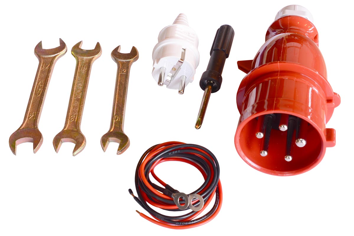 Электрическая вилка, разъем для АВР, предпусковой подогреватель, комплект проводов, колёса
