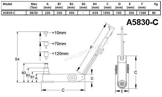 Характеристики Домкрат пневмогидравлический г/п 58/30 т Compac (Дания) A5830-C