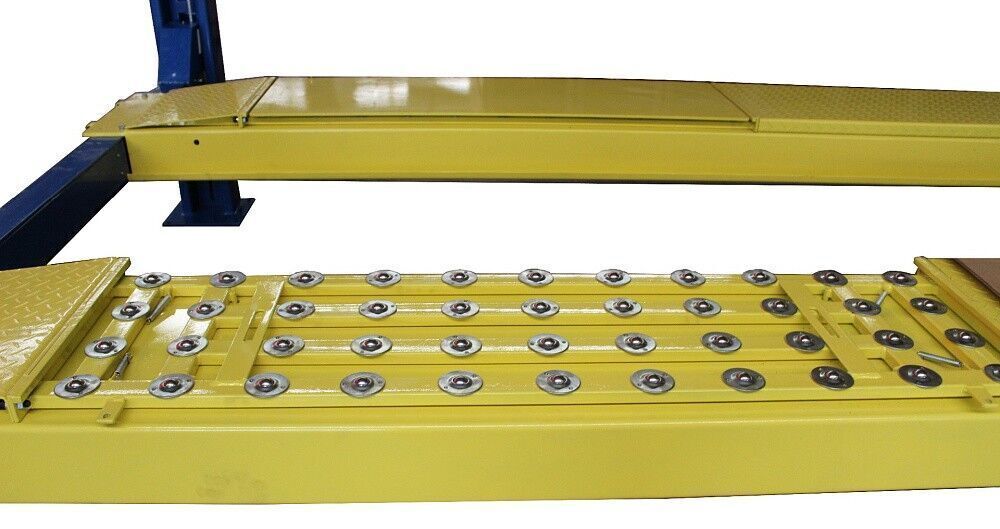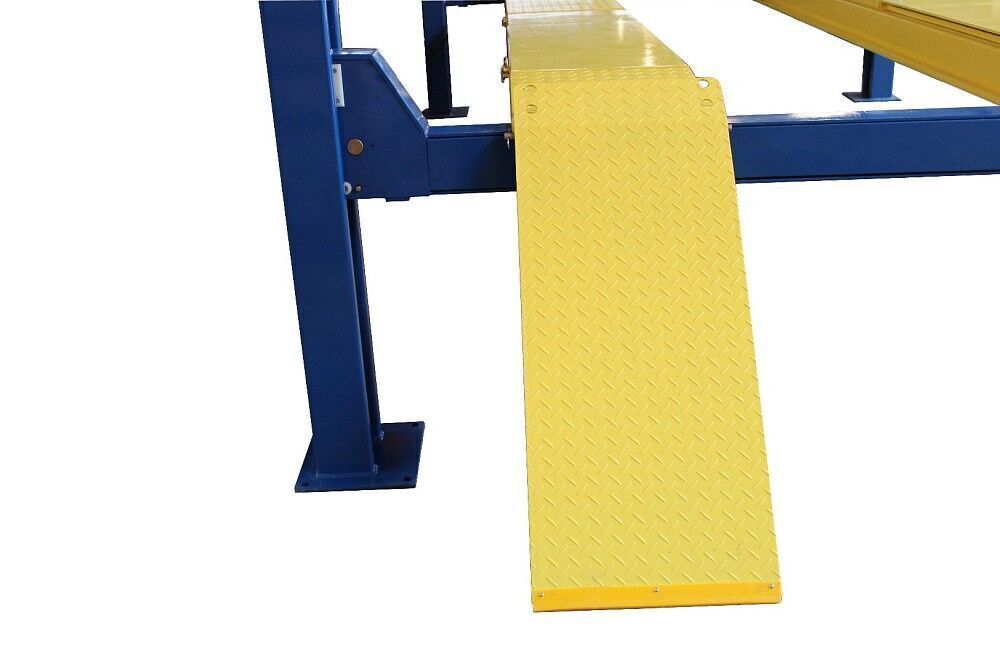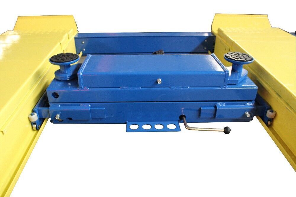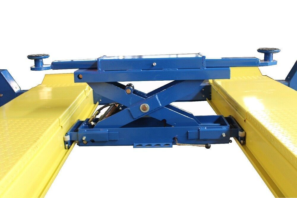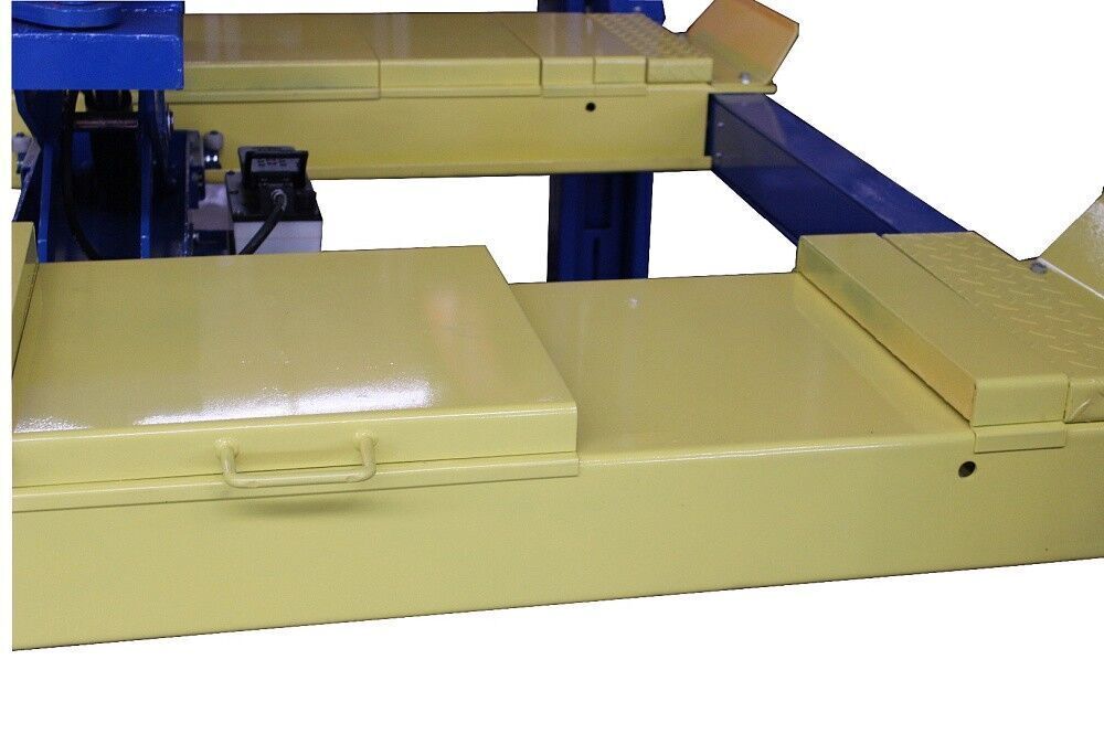 Подъемник предназначен для проведения сход-развала. Это значит скользящие пластины под задние колеса уже вмонтированы в трапы подъемника, и подготовлены места с заглушками для поворотных кругов под передние колеса. Один мощный гидравлический цилиндр под трапом и система.