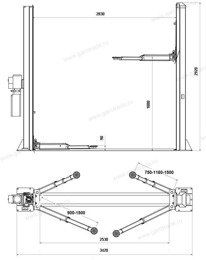 | Модель | Двухстоечный подъемник RLP2-450 |