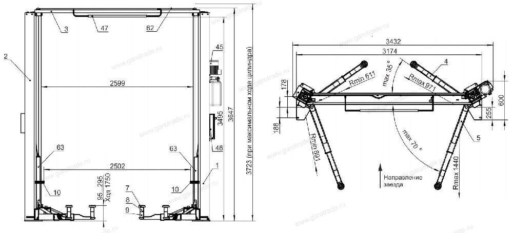 Характеристики Двухстоечный подъемник Сивик габарит 3750 мм ПГА-4200 КЕ