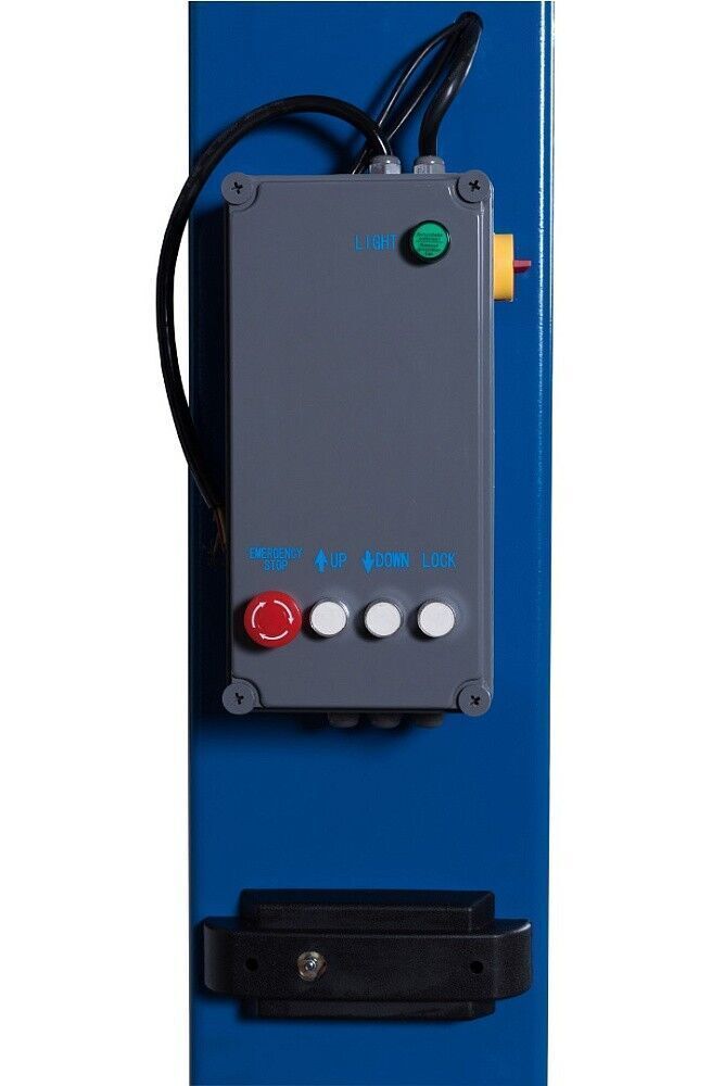 В этой модели применена система безопасности, которая срабатывает путем фиксации замка с рейкой с шагом 7,6 см при движении подъемника вверх. Перед тем, как зайти в рабочую зону, оператору обязательно следует заблокировать оборудование кнопкой LOCK на пульте управления. Разблокировка осуществляется также кнопкой с пульта.