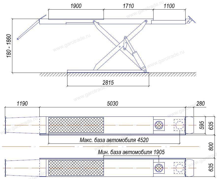 Предназначен для подъема автомобилей, легких грузовиков и микроавтобусов массой до 4,5 т, в процессе осуществления технического обслуживания и ремонта, а также при проведении измерений и регулировки углов установки колес (сход–развал).