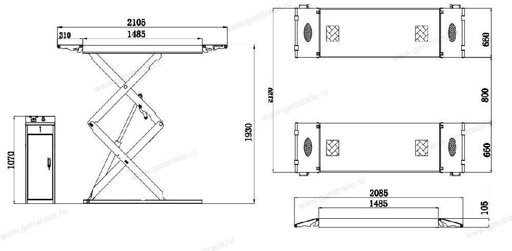 Характеристики Ножничный подъемник короткий под пороги Напольный низкопрофильный (380 В) KRW350SF Серый Kraftwell