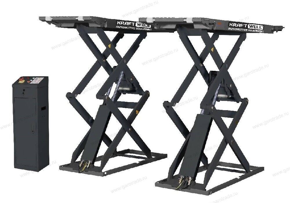 Отзывы на Ножничный подъемник короткий под пороги Напольный низкопрофильный (380 В) KRW350SF Серый Kraftwell
