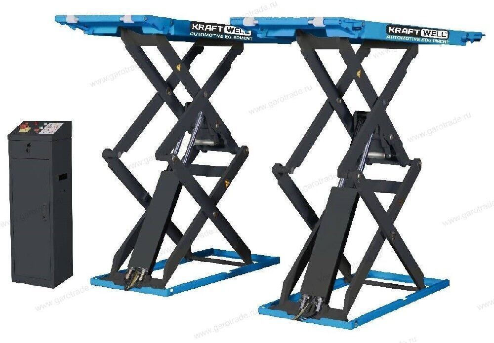 Купить Ножничный подъемник короткий под пороги Напольный низкопрофильный KRW350SF (220 В) Синий Kraftwell у официального дилера