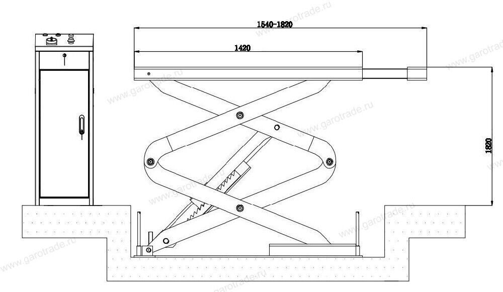 Характеристики Ножничный подъемник короткий под пороги Заглубляемый в пол (380 В) KRW360SU Серый Kraftwell