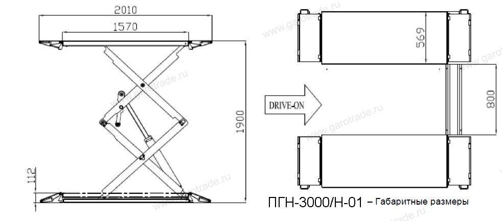 Характеристики Ножничный подъемник под пороги Sivik г/п 3 т ПГН3000/Н-01