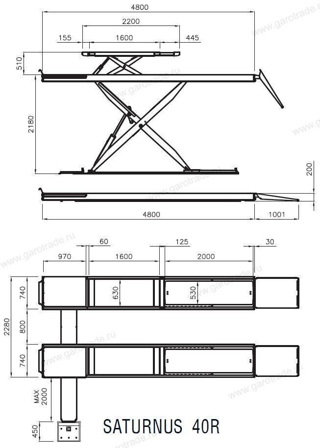 Характеристики Подъемник ножничный для РУУК ГП 4 т С подъемником второго уровня Saturnus 40R ATLT RAL70 OMA/Werther