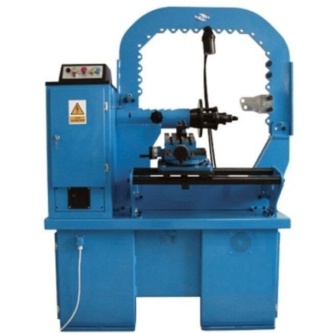 Токарная группа: есть. Стенд для правки штампованных и легкосплавных дисков. Гидравлический зажим. Токарная группа. П- образная рама. Правка выполняется гидравлическим цилиндром и соответствующими рабочими насадками. Рабочие насадки позволяют ремонтировать диски в любой точке повреждения. Место деформации определяется механическим датчиком биения после закрепления диска на универсальном фланце, находящимся на шпинделе станка, с помощью центрирующих колец и крепежных болтов. Максимальное давление в гидросистеме 200