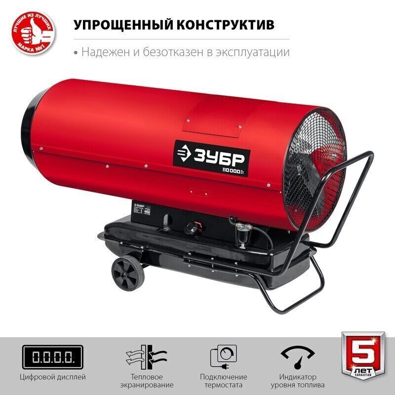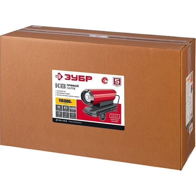 Вопросы и ответы о Дизельная тепловая пушка Зубр ДП-К8-110-Д - прямого нагрева / 110 кВт