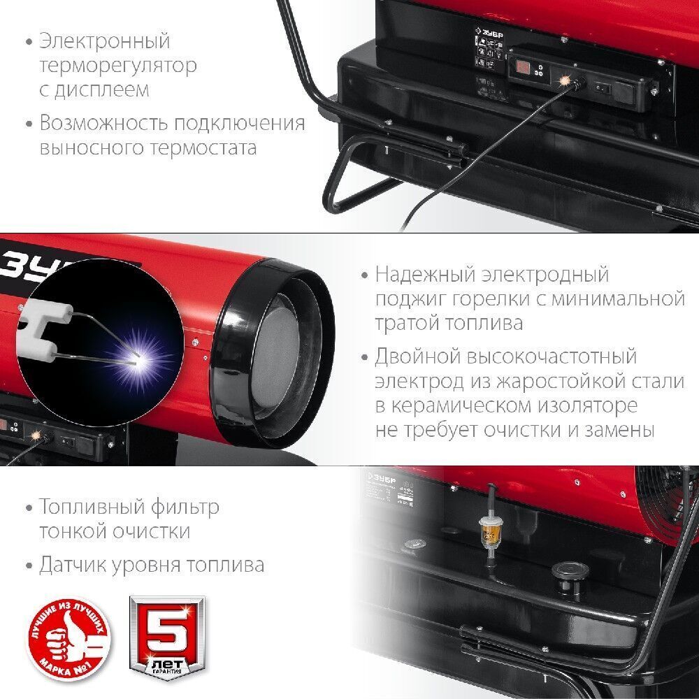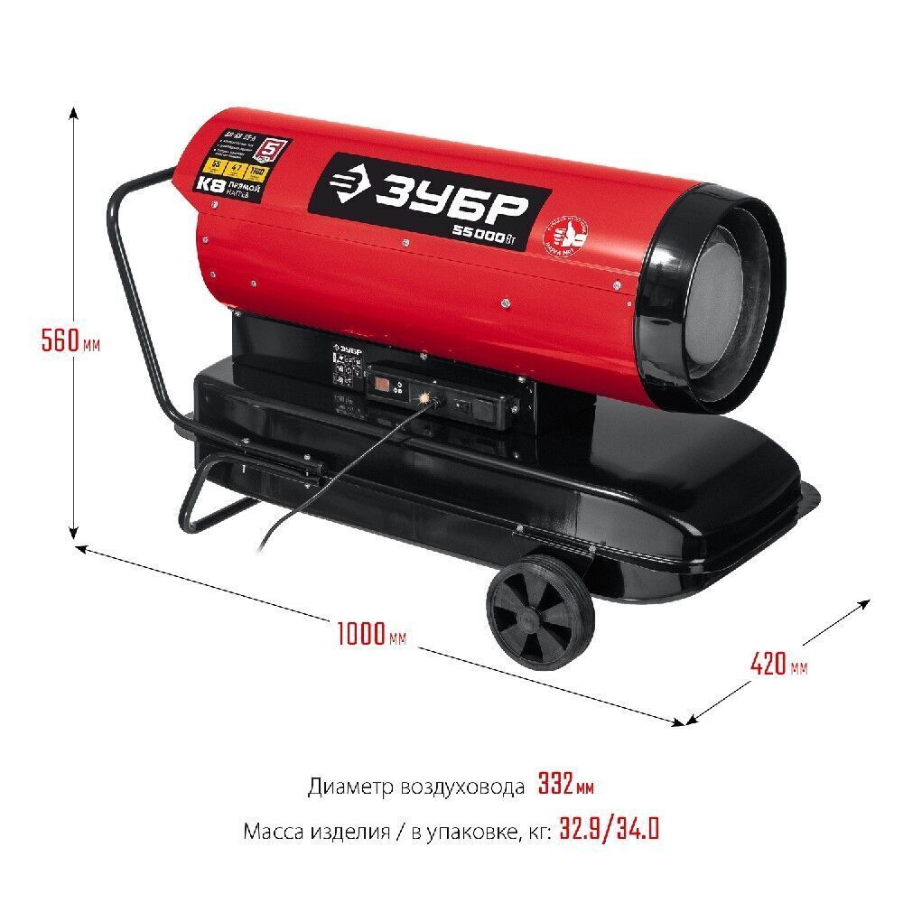 Вопросы и ответы о Дизельная тепловая пушка Зубр ДП-К8-55-Д - прямого нагрева / 55 кВт
