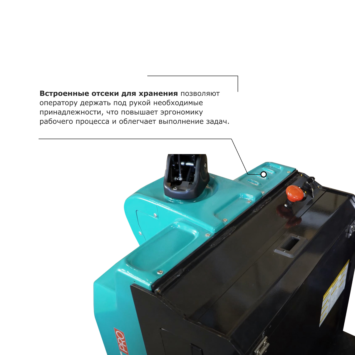 - Встроенные отсеки для хранения позволяют оператору держать под рукой необходимые принадлежности, что повышает эргономику рабочего процесса и облегчает выполнение задач.