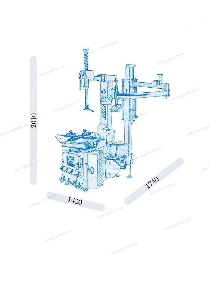 Автоматический шиномонтажный станок начального уровня. Монтажная консоль откидывается назад вместе с колонной, и возвращается в рабочее положение пневматическим приводом. Предназначен для демонтажа/монтажа шин всех типов колес легковых автомобилей.