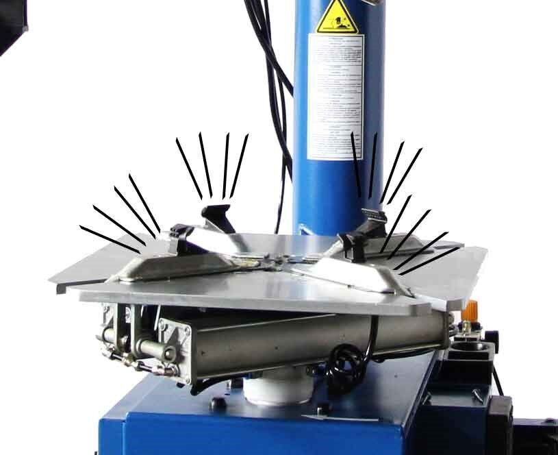В данной модели предусмотрен монтажный стол увеличенной площади для размещения колес камерных, бескамерных, с низким профилем. Для быстрой и качественной усадки на обод бескамерных шин аппарат имеет модуль взрывной накачки, подающий мощный поток воздуха через зажимные кулачки.