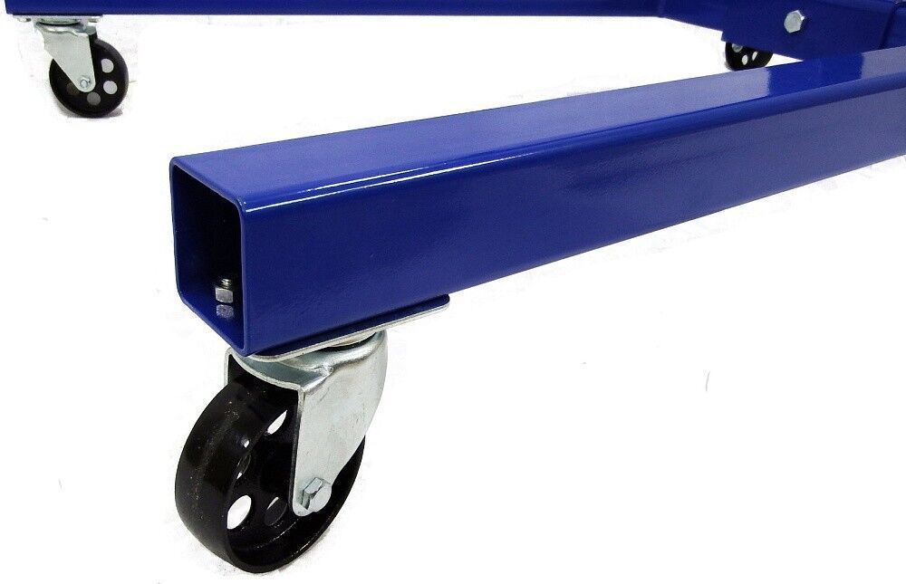 Данную модель можно использовать с практически любыми двигателями, потому что конструкция усилена и проварена для работы с большими весами, систему из четырех кронштейнов можно быстро настроить под любые агрегаты разного размера, а мощные колеса позволяют перемещать грузы между помещениями. Запас прочности гарантируют множественные тесты и доработки, которые мы сделали специально для соответствия с условиями российских автотранспортных предприятий.