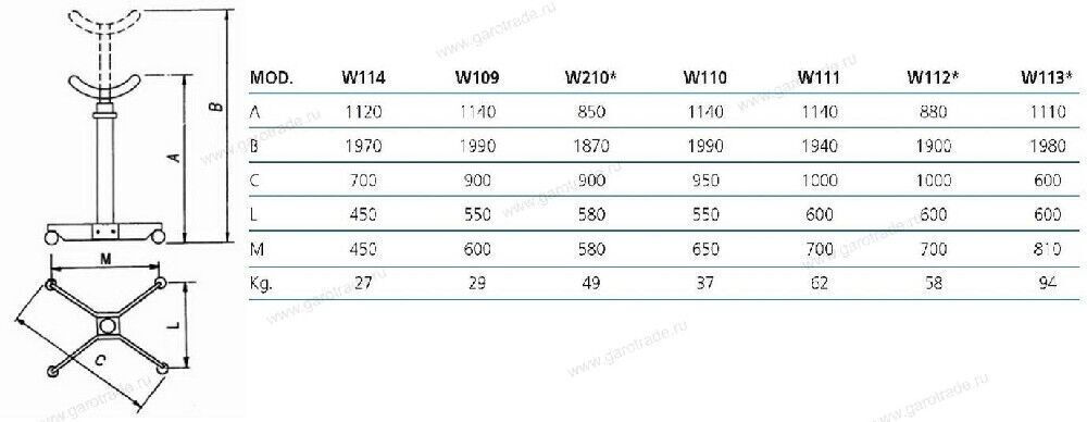 Характеристики Стойка трансмиссионная Werther-OMA г/п 1000 кг Серая W110 (OMA606)